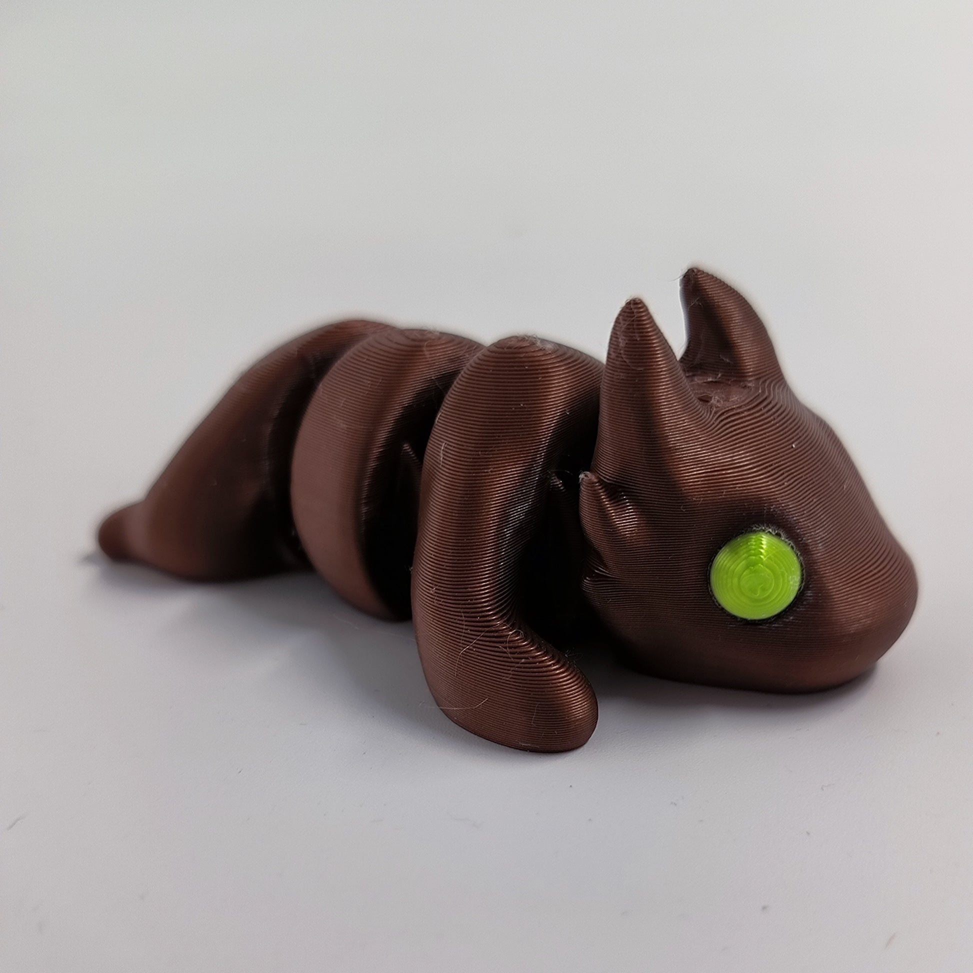 Experience the beauty and craftsmanship of a 3D-printed fantasy world with this regal baby dragon figurine. Made with high-quality PLA material, this figurine is perfect for play or as a decorative tiny desk pet. Its body comprises four segments, ideal for articulation and they can be found in either umber brown or fiery orange.